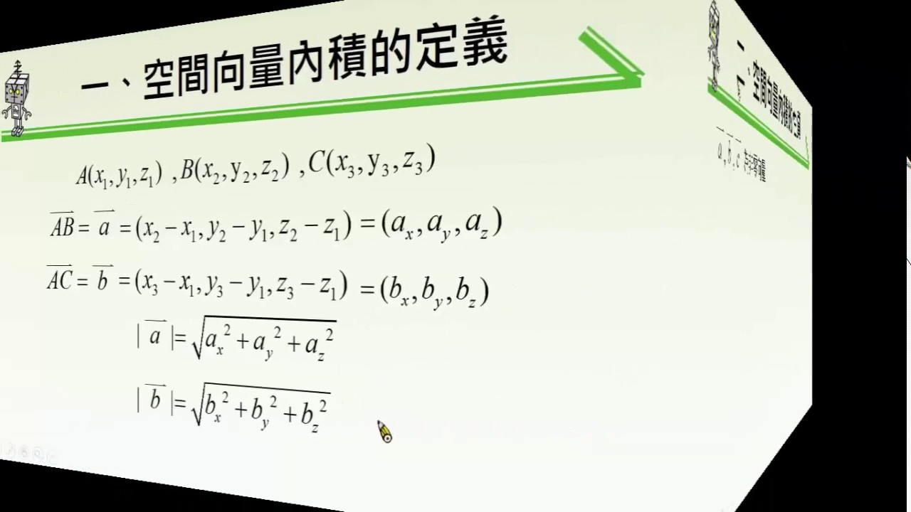 載入中... 相關課程 Back 【觀念】空間中向量內積的坐標意義 相關課程 0 / 750 登入觀看 ⇐ Use this menu to view and help create subtitles for this video in many different languages. You'll probably want to hide YouTube's captions if using these subtitles. 【觀念】空間中向量內積的坐標意義 上傳學習單 下載學習單