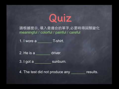 載入中... 相關課程 Back 單字:形容詞字尾 相關課程 0 / 750 登入觀看 ⇐ Use this menu to view and help create subtitles for this video in many different languages. You'll probably want to hide YouTube's captions if using these subtitles. 單字:形容詞字尾 上傳學習單 下載學習單
