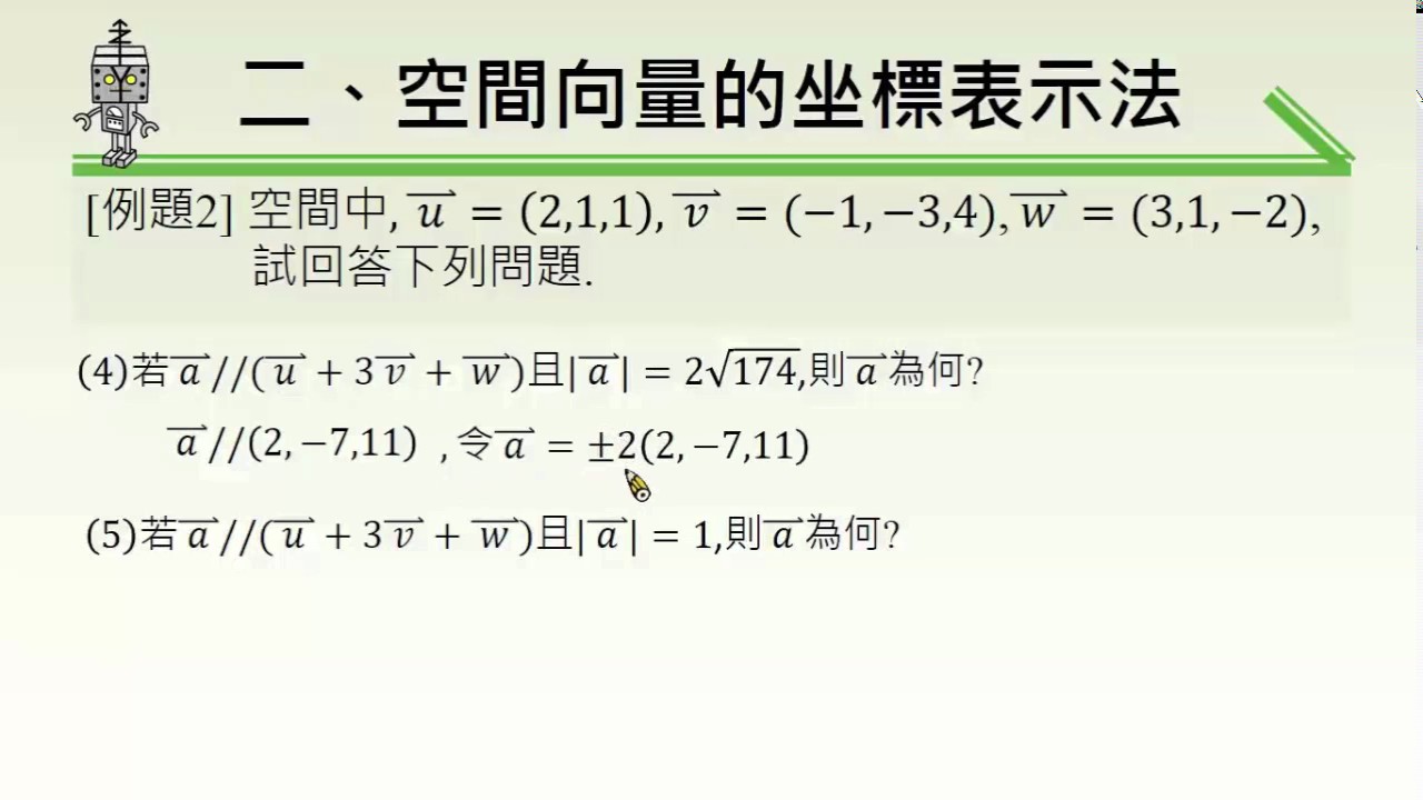 載入中... 相關課程 Back 【例題】空間向量的坐標表法(2/2) 相關課程 0 / 750 登入觀看 ⇐ Use this menu to view and help create subtitles for this video in many different languages. You'll probably want to hide YouTube's captions if using these subtitles. 【例題】空間向量的坐標表法(2/2) 上傳學習單 下載學習單