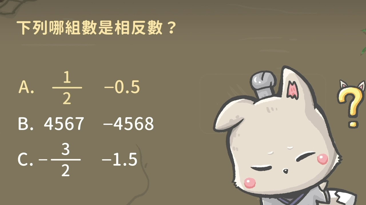 Back 【觀念】相反數 相關課程 0 / 750 登入觀看 ⇐ Use this menu to view and help create subtitles for this video in many different languages. You'll probably want to hide YouTube's captions if using these subtitles. 【觀念】相反數 上傳學習單 下載學習單