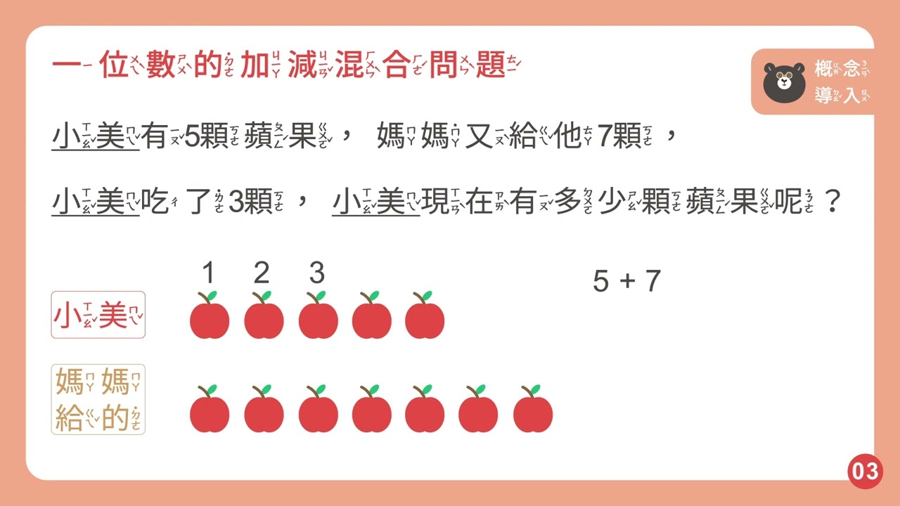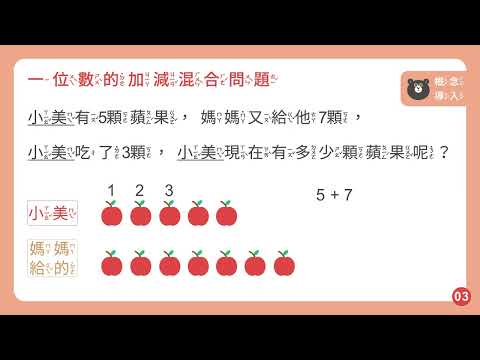 載入中... 相關課程 Back 【解題】能在具體情境中,解決一位數的加減混合的問題 相關課程 0 / 750 登入觀看 ⇐ Use this menu to view and help create subtitles for this video in many different languages. You'll probably want to hide YouTube's captions if using these subtitles. 【解題】能在具體情境中,解決一位數的加減混合的問題 上傳學習單 下載學習單