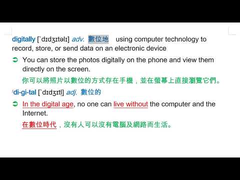 載入中... 相關課程 Back digitally [`dɪdʒɪtəlɪ] adv. 數位地 相關課程 0 / 750 登入觀看 ⇐ Use this menu to view and help create subtitles for this video in many different languages. You'll probably want to hide YouTube's captions if using these subtitles. digitally [`dɪdʒɪtəlɪ] adv. 數位地 上傳學習單 下載學習單