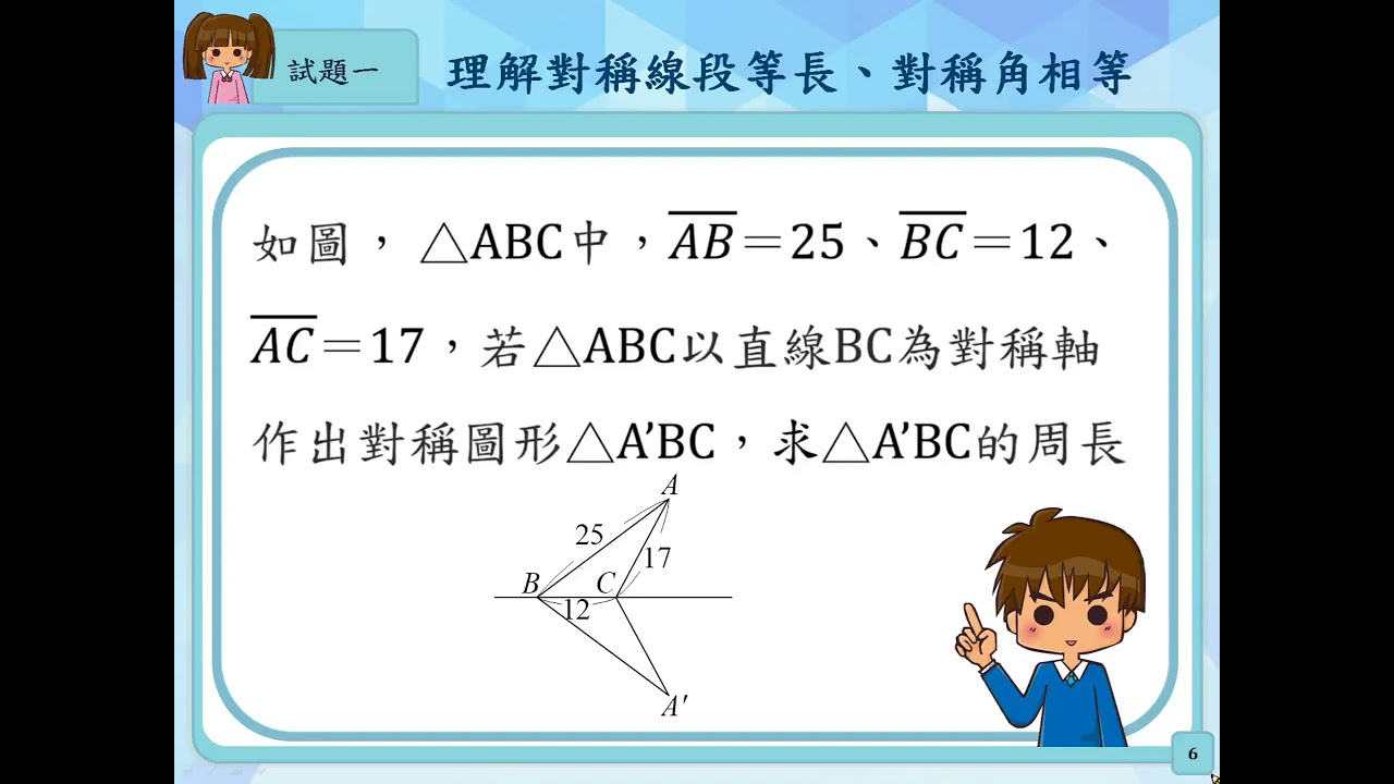 載入中... 相關課程 Back S-7-4-S04_理解對稱線段等長、對稱角相等。 相關課程 0 / 750 登入觀看 ⇐ Use this menu to view and help create subtitles for this video in many different languages. You'll probably want to hide YouTube's captions if using these subtitles. S-7-4-S04_理解對稱線段等長、對稱角相等。 上傳學習單 下載學習單