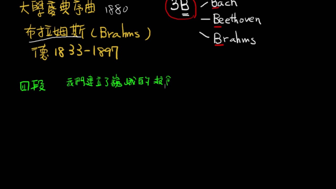 載入中... 相關課程 Back 布拉姆斯與大學慶典序曲-浪漫樂派作曲方式 相關課程 0 / 750 登入觀看 ⇐ Use this menu to view and help create subtitles for this video in many different languages. You'll probably want to hide YouTube's captions if using these subtitles. 布拉姆斯與大學慶典序曲-浪漫樂派作曲方式 上傳學習單 下載學習單
