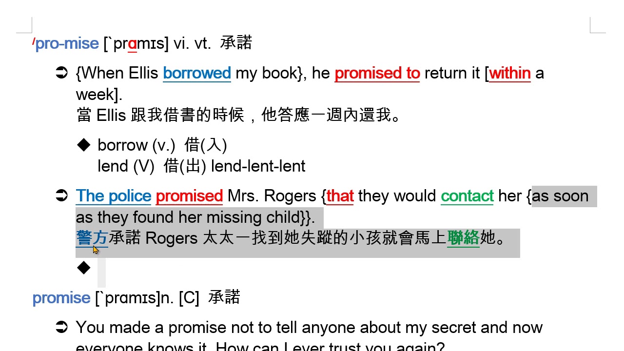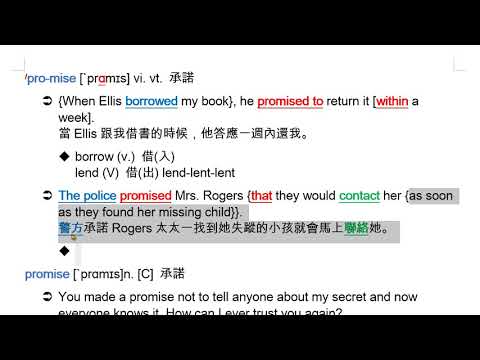 載入中... 相關課程 Back promise (vi. vt.) 承諾 相關課程 0 / 750 登入觀看 ⇐ Use this menu to view and help create subtitles for this video in many different languages. You'll probably want to hide YouTube's captions if using these subtitles. promise (vi. vt.) 承諾 上傳學習單 下載學習單