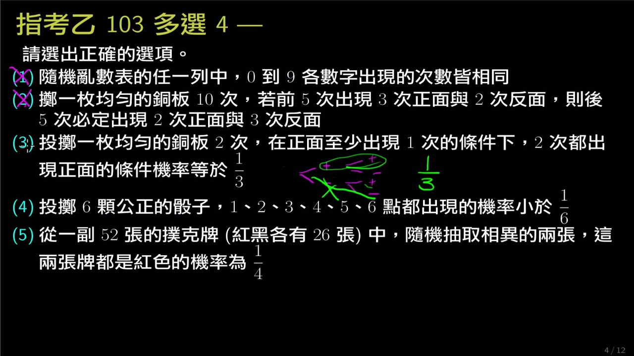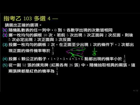 載入中... 相關課程 Back 【數乙】103 多選4 機率的概念 相關課程 0 / 750 登入觀看 ⇐ Use this menu to view and help create subtitles for this video in many different languages. You'll probably want to hide YouTube's captions if using these subtitles. 【數乙】103 多選4 機率的概念 上傳學習單 下載學習單