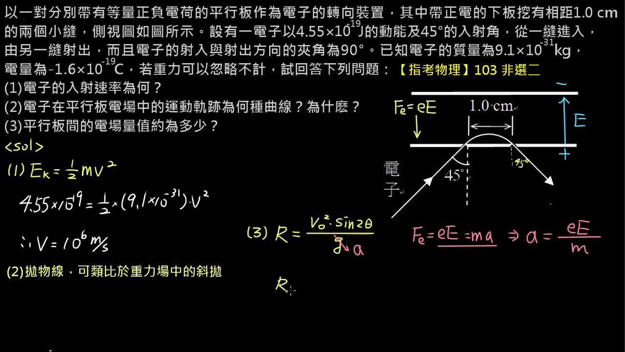 載入中... 相關課程 Back 【例題】【指考物理】103 非選二:電荷初速與均勻電場有一夾角 相關課程 0 / 750 登入觀看 ⇐ Use this menu to view and help create subtitles for this video in many different languages. You'll probably want to hide YouTube's captions if using these subtitles. 【例題】【指考物理】103 非選二:電荷初速與均勻電場有一夾角 上傳學習單 下載學習單