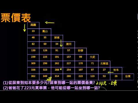 載入中... 相關課程 Back 【例題】火車票價表 相關課程 0 / 750 登入觀看 ⇐ Use this menu to view and help create subtitles for this video in many different languages. You'll probably want to hide YouTube's captions if using these subtitles. 【例題】火車票價表 上傳學習單 下載學習單