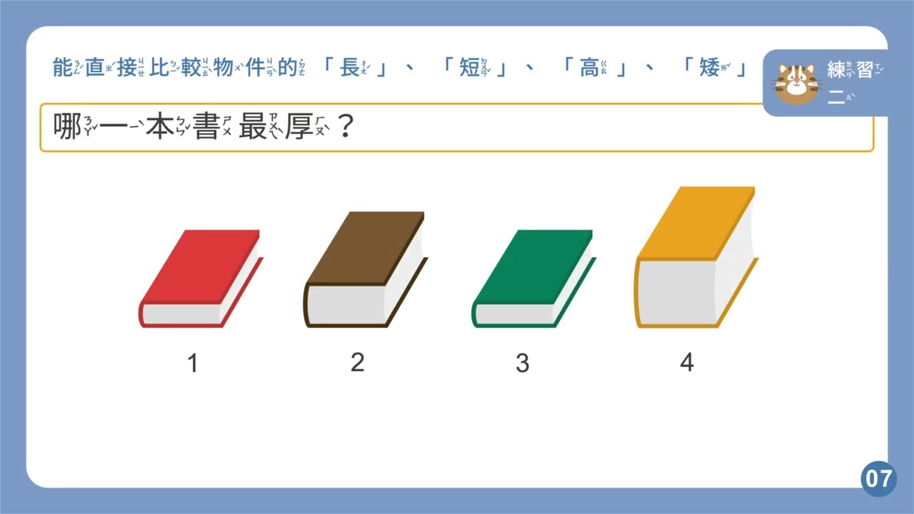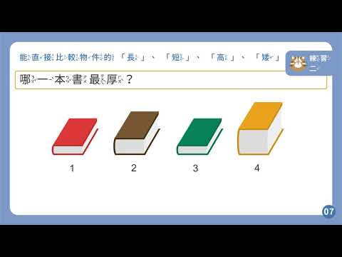 載入中... 相關課程 Back 【觀念】能直接比較物件的「長」、「短」、「高」、「矮」 相關課程 0 / 750 登入觀看 ⇐ Use this menu to view and help create subtitles for this video in many different languages. You'll probably want to hide YouTube's captions if using these subtitles. 【觀念】能直接比較物件的「長」、「短」、「高」、「矮」 上傳學習單 下載學習單