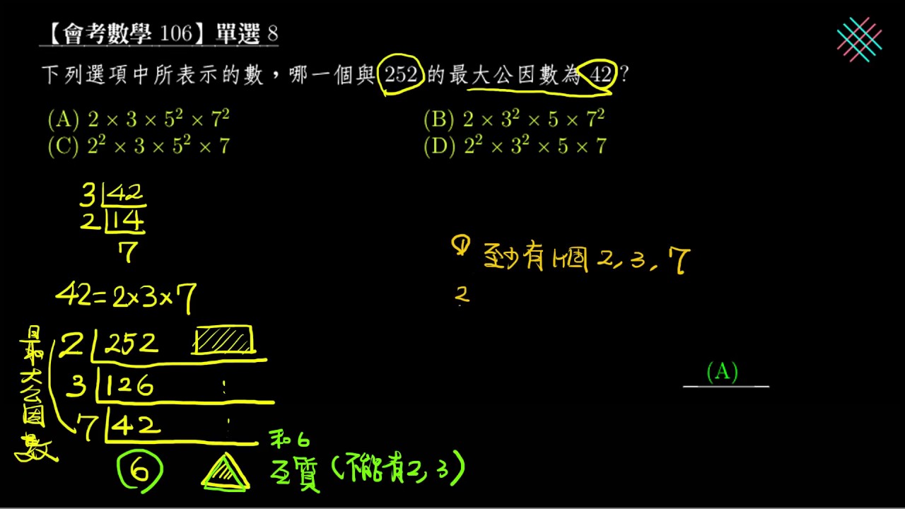 載入中... 相關課程 Back 【會考數學】106 單選08:最大公因數的意義 相關課程 0 / 750 登入觀看 ⇐ Use this menu to view and help create subtitles for this video in many different languages. You'll probably want to hide YouTube's captions if using these subtitles. 【會考數學】106 單選08:最大公因數的意義 上傳學習單 下載學習單