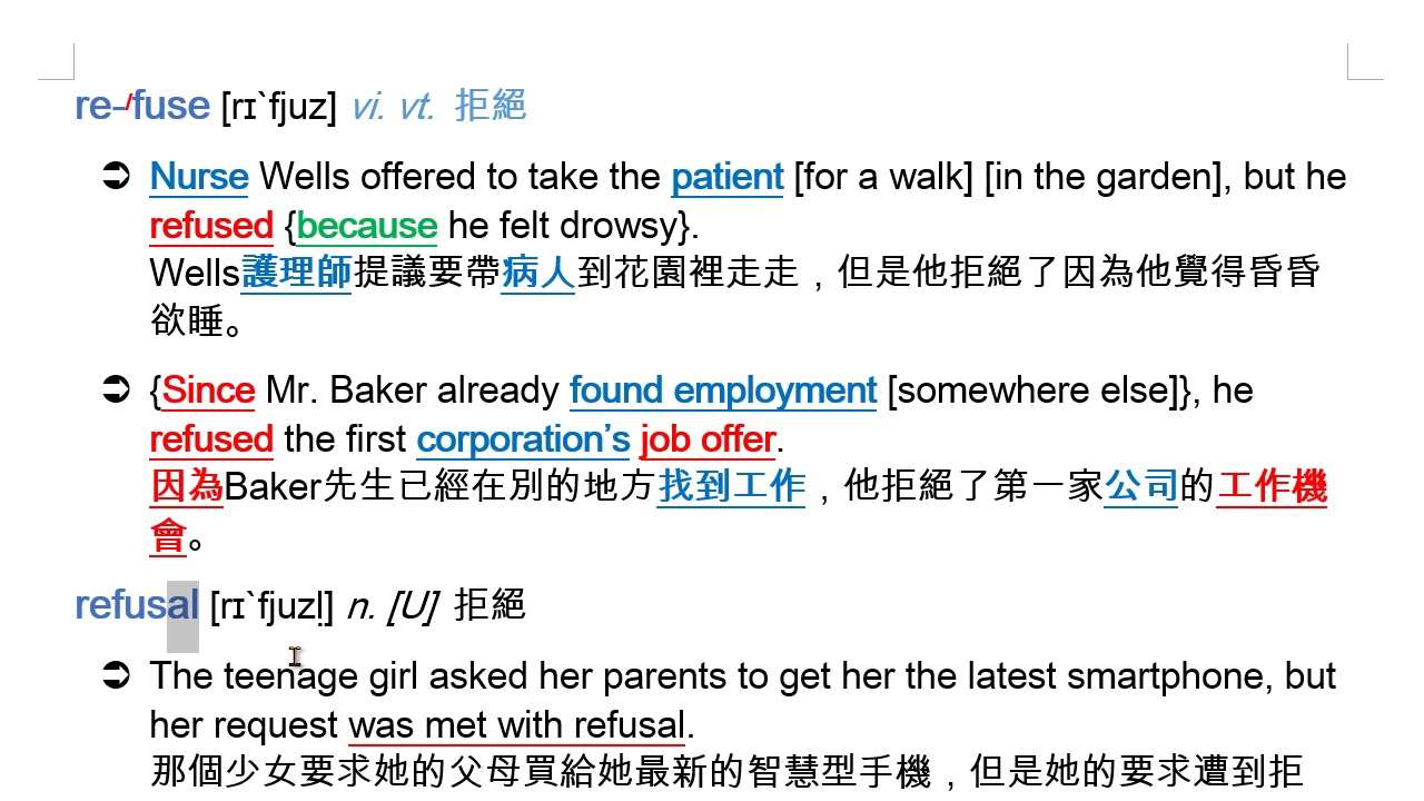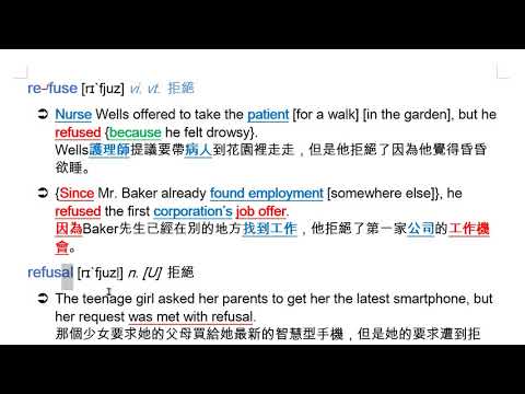 refuse (vi. vt.) 拒絕