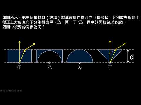 載入中... 相關課程 Back 【例題】半球體內物體的視深 相關課程 0 / 750 登入觀看 ⇐ Use this menu to view and help create subtitles for this video in many different languages. You'll probably want to hide YouTube's captions if using these subtitles. 【例題】半球體內物體的視深 上傳學習單 下載學習單