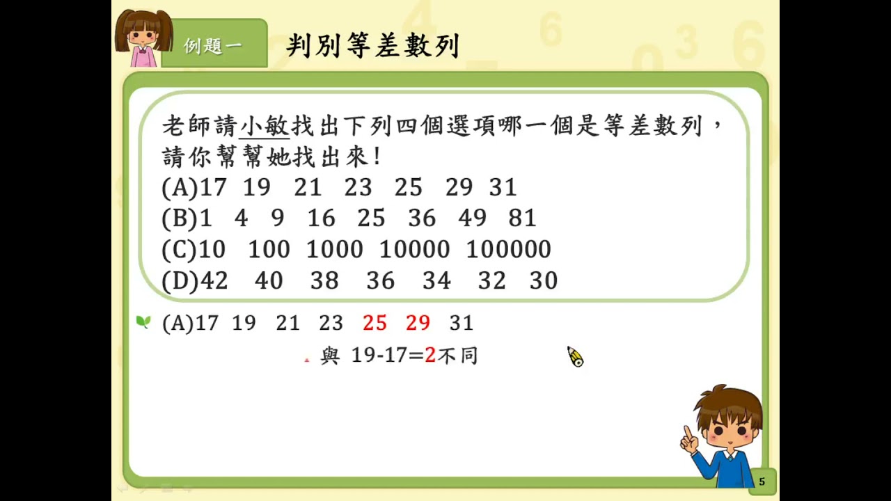 載入中... 相關課程 Back N-8-4-S01_能辨別等差數列與了解等差數列中公差的求法。 相關課程 0 / 750 登入觀看 ⇐ Use this menu to view and help create subtitles for this video in many different languages. You'll probably want to hide YouTube's captions if using these subtitles. N-8-4-S01_能辨別等差數列與了解等差數列中公差的求法。 上傳學習單 下載學習單