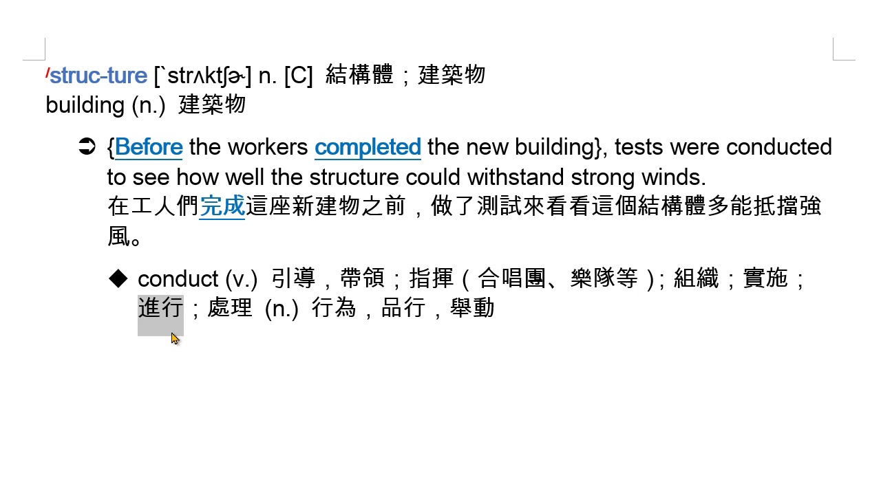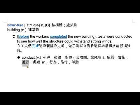 載入中... 相關課程 Back structure (n.) [C] 結構體;建築物 相關課程 0 / 750 登入觀看 ⇐ Use this menu to view and help create subtitles for this video in many different languages. You'll probably want to hide YouTube's captions if using these subtitles. structure (n.) [C] 結構體;建築物 上傳學習單 下載學習單