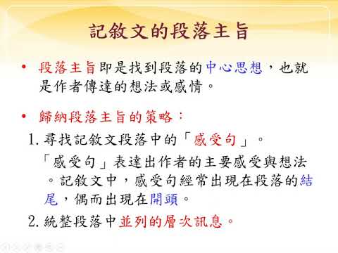 載入中... 相關課程 Back 段落[十]/段旨:記敘文(文) 相關課程 0 / 750 登入觀看 ⇐ Use this menu to view and help create subtitles for this video in many different languages. You'll probably want to hide YouTube's captions if using these subtitles. 段落[十]/段旨:記敘文(文) 上傳學習單 下載學習單