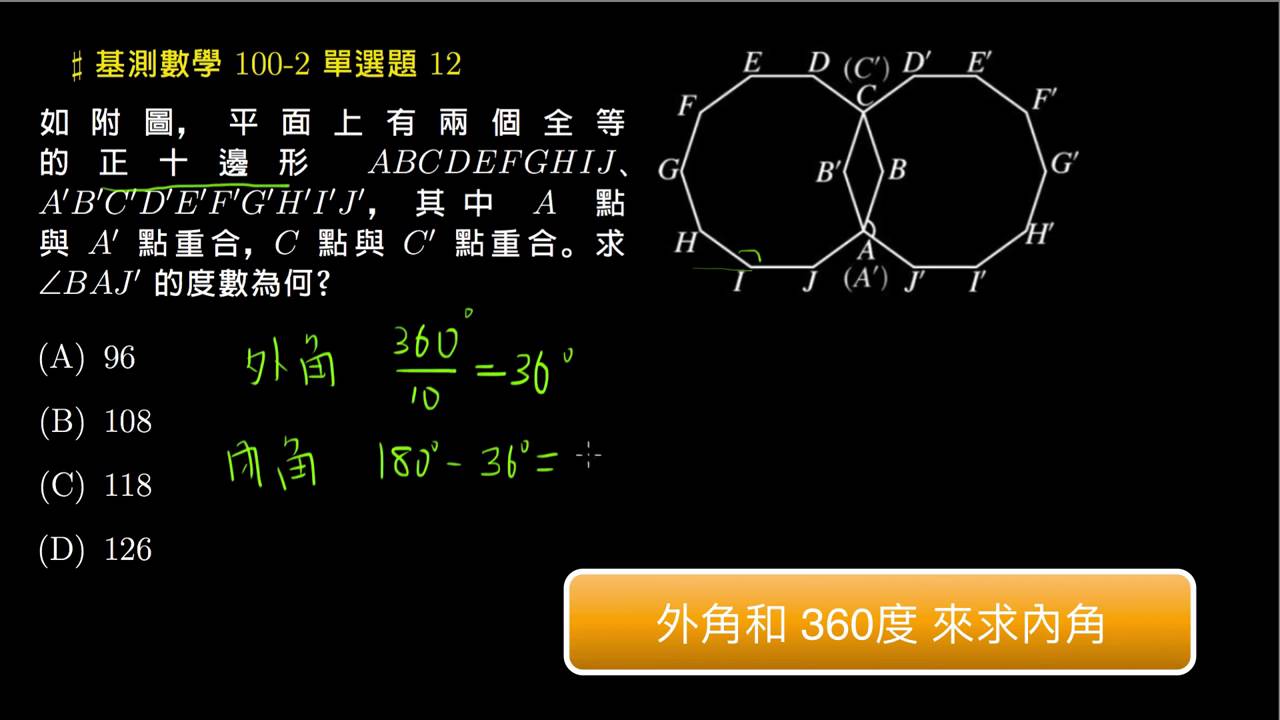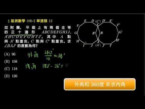 載入中... 相關課程 Back 【基測數學】100v2 單選12:兩個正十邊形 相關課程 0 / 750 登入觀看 ⇐ Use this menu to view and help create subtitles for this video in many different languages. You'll probably want to hide YouTube's captions if using these subtitles. 【基測數學】100v2 單選12:兩個正十邊形 上傳學習單 下載學習單