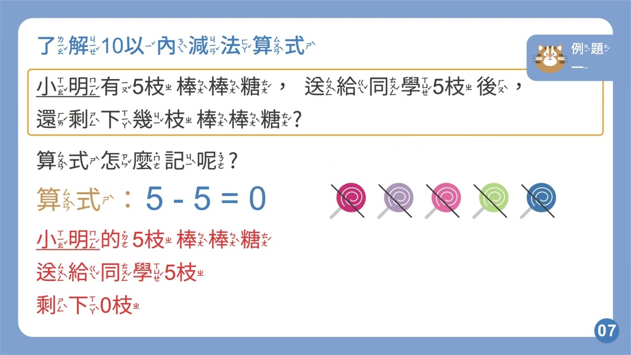 載入中... 相關課程 Back 【觀念】能從問題<拿走型>情境中,認識10以內減法的算式記錄和結果,並了解各數字及符號代表的意義 相關課程 0 / 750 登入觀看 ⇐ Use this menu to view and help create subtitles for this video in many different languages. You'll probably want to hide YouTube's captions if using these subtitles. 【觀念】能從問題<拿走型>情境中,認識10以內減法的算式記錄和結果,並了解各數字及符號代表的意義 上傳學習單 下載學習單