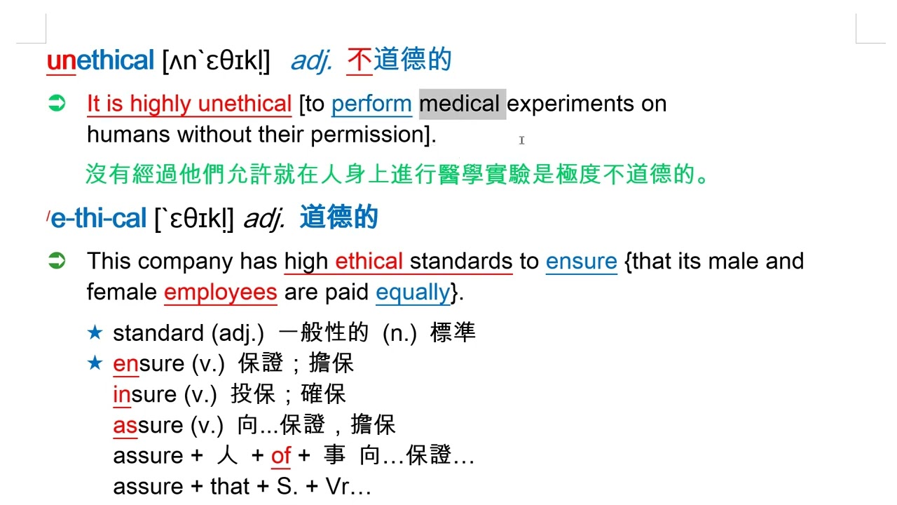 載入中... 相關課程 Back unethical [ʌn`ɛθɪkḷ] adj. 不道德的 相關課程 0 / 750 登入觀看 ⇐ Use this menu to view and help create subtitles for this video in many different languages. You'll probably want to hide YouTube's captions if using these subtitles. unethical [ʌn`ɛθɪkḷ] adj. 不道德的 上傳學習單 下載學習單