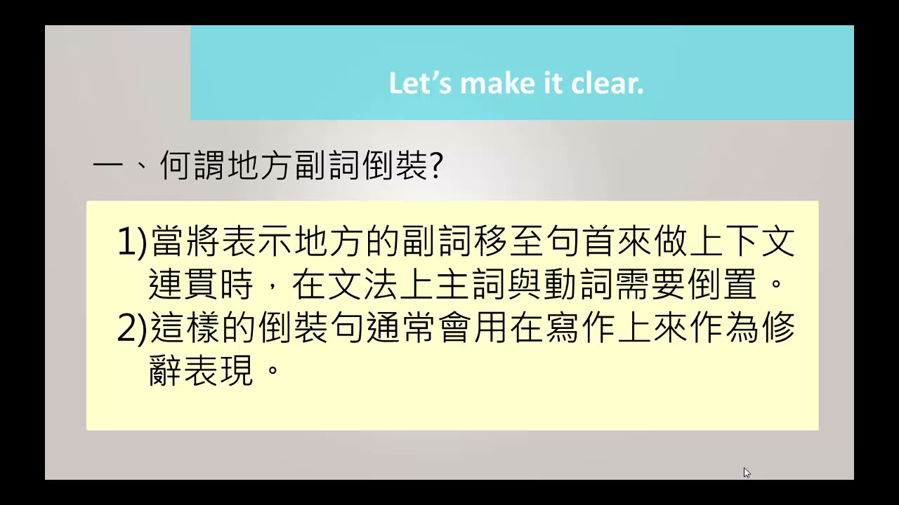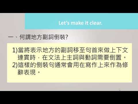 載入中... 相關課程 Back 句型:地方副詞倒裝 相關課程 0 / 750 登入觀看 ⇐ Use this menu to view and help create subtitles for this video in many different languages. You'll probably want to hide YouTube's captions if using these subtitles. 句型:地方副詞倒裝 上傳學習單 下載學習單