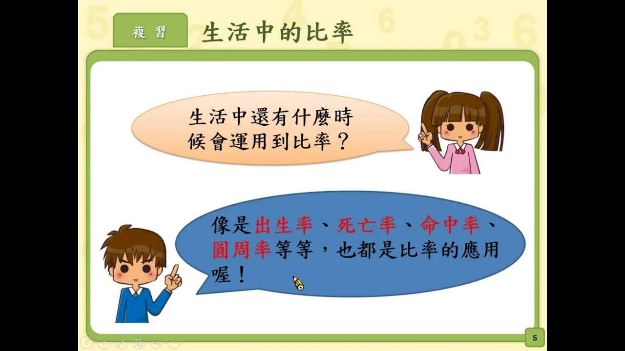 載入中... 相關課程 Back N-5-10-S01:透過生活中的情境,認識比率的概念是「部分量占總量的多少」。 相關課程 0 / 750 登入觀看 ⇐ Use this menu to view and help create subtitles for this video in many different languages. You'll probably want to hide YouTube's captions if using these subtitles. N-5-10-S01:透過生活中的情境,認識比率的概念是「部分量占總量的多少」。 上傳學習單 下載學習單