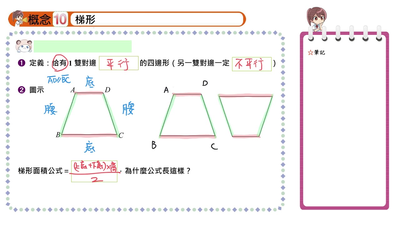 載入中... 相關課程 Back 【觀念】認識梯形 相關課程 0 / 750 登入觀看 ⇐ Use this menu to view and help create subtitles for this video in many different languages. You'll probably want to hide YouTube's captions if using these subtitles. 【觀念】認識梯形 上傳學習單 下載學習單