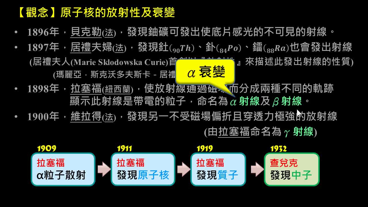 載入中... 相關課程 Back 【觀念】原子核的放射性及衰變 相關課程 0 / 750 登入觀看 ⇐ Use this menu to view and help create subtitles for this video in many different languages. You'll probably want to hide YouTube's captions if using these subtitles. 【觀念】原子核的放射性及衰變 上傳學習單 下載學習單