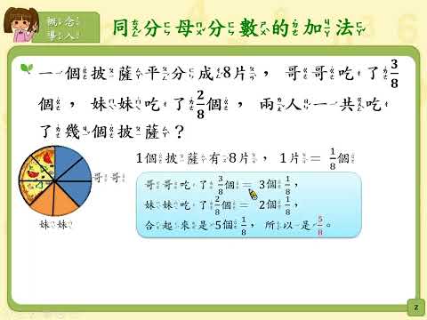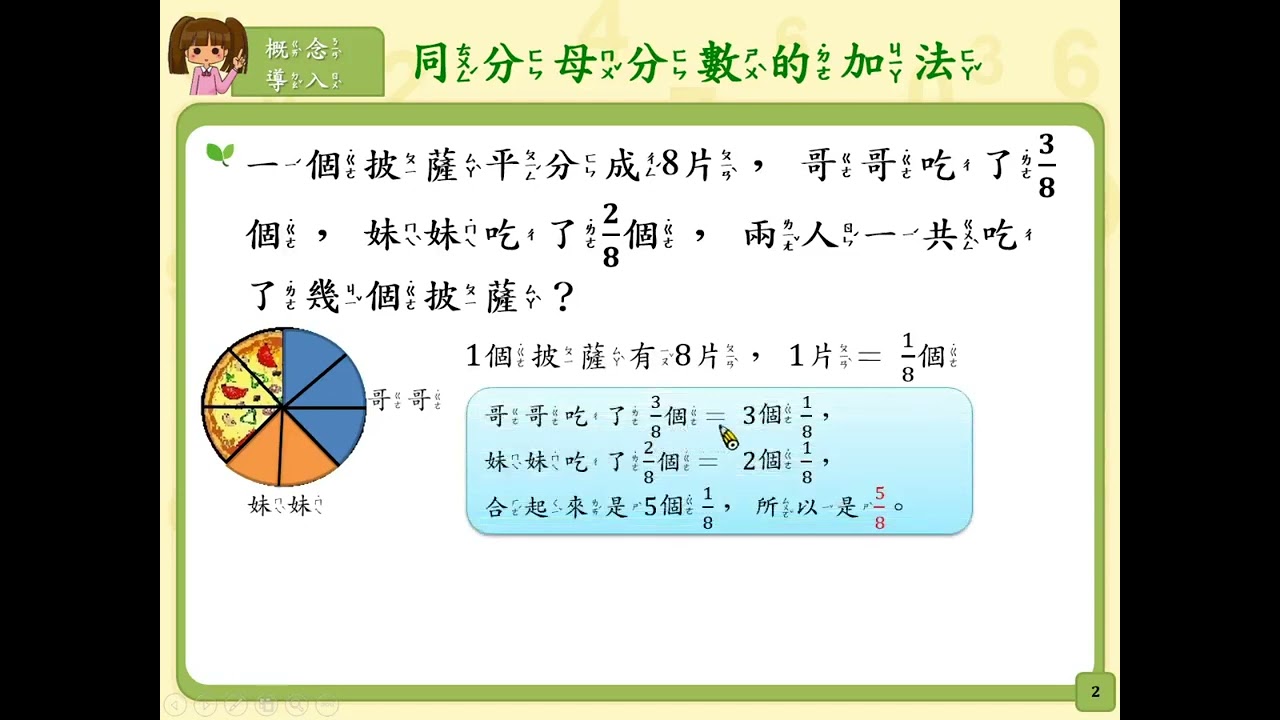 【概念導入】同分母分數的加法:3/8 + 2/8