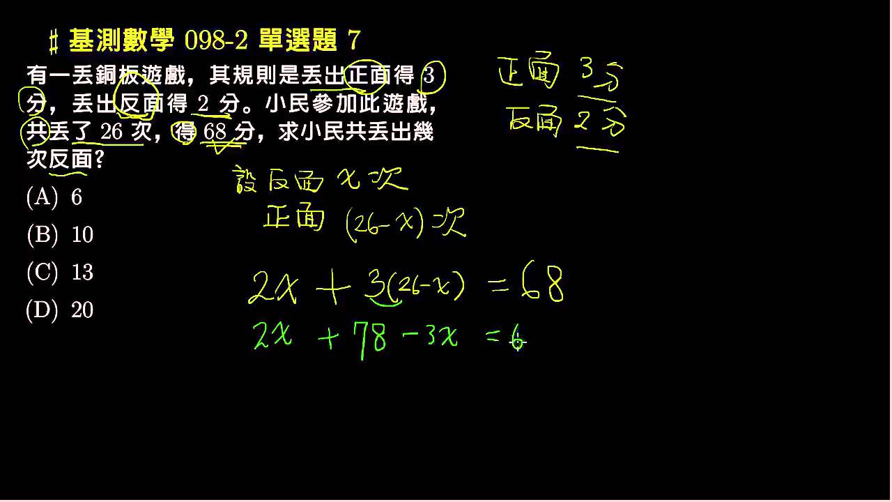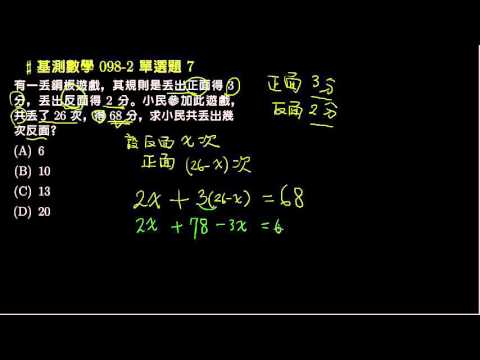 載入中... 相關課程 Back 【基測數學】98v2 單選07:一元一次方程式 相關課程 0 / 750 登入觀看 ⇐ Use this menu to view and help create subtitles for this video in many different languages. You'll probably want to hide YouTube's captions if using these subtitles. 【基測數學】98v2 單選07:一元一次方程式 上傳學習單 下載學習單