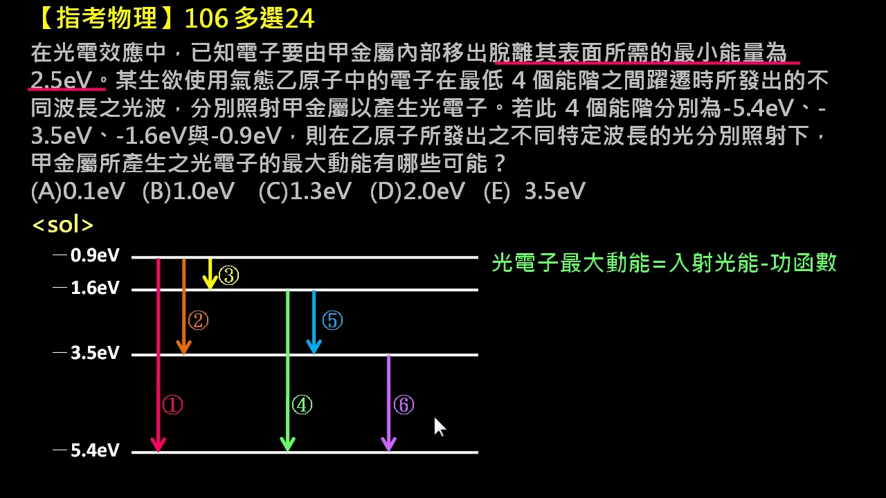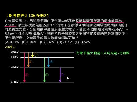 載入中... 相關課程 Back 【指考物理】106 多選24:光電效應與能階躍遷 相關課程 0 / 750 登入觀看 ⇐ Use this menu to view and help create subtitles for this video in many different languages. You'll probably want to hide YouTube's captions if using these subtitles. 【指考物理】106 多選24:光電效應與能階躍遷 上傳學習單 下載學習單