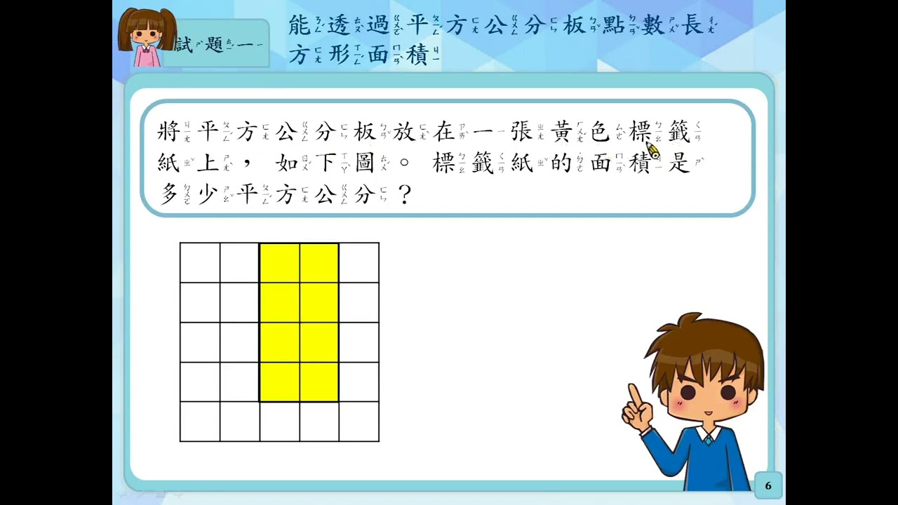 載入中... 相關課程 Back N-3-14-S02 能透過平方公分板點數平面圖形(長方形、正方形)的面積 相關課程 0 / 750 登入觀看 ⇐ Use this menu to view and help create subtitles for this video in many different languages. You'll probably want to hide YouTube's captions if using these subtitles. N-3-14-S02 能透過平方公分板點數平面圖形(長方形、正方形)的面積 上傳學習單 下載學習單