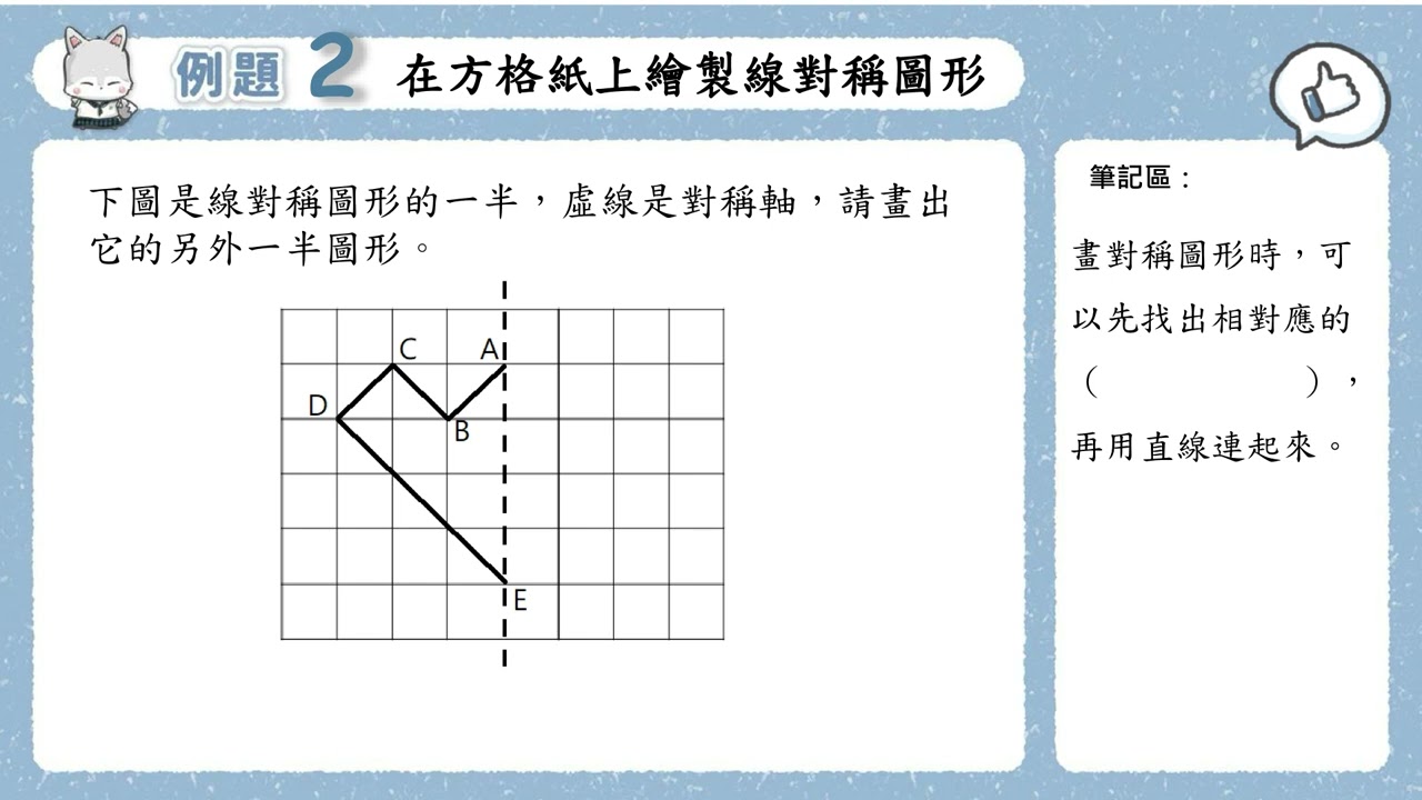 載入中... 相關課程 Back 五上 單元7 8 例題2 在方格紙上繪製線對稱圖形 相關課程 0 / 750 登入觀看 ⇐ Use this menu to view and help create subtitles for this video in many different languages. You'll probably want to hide YouTube's captions if using these subtitles. 五上 單元7 8 例題2 在方格紙上繪製線對稱圖形 上傳學習單 下載學習單
