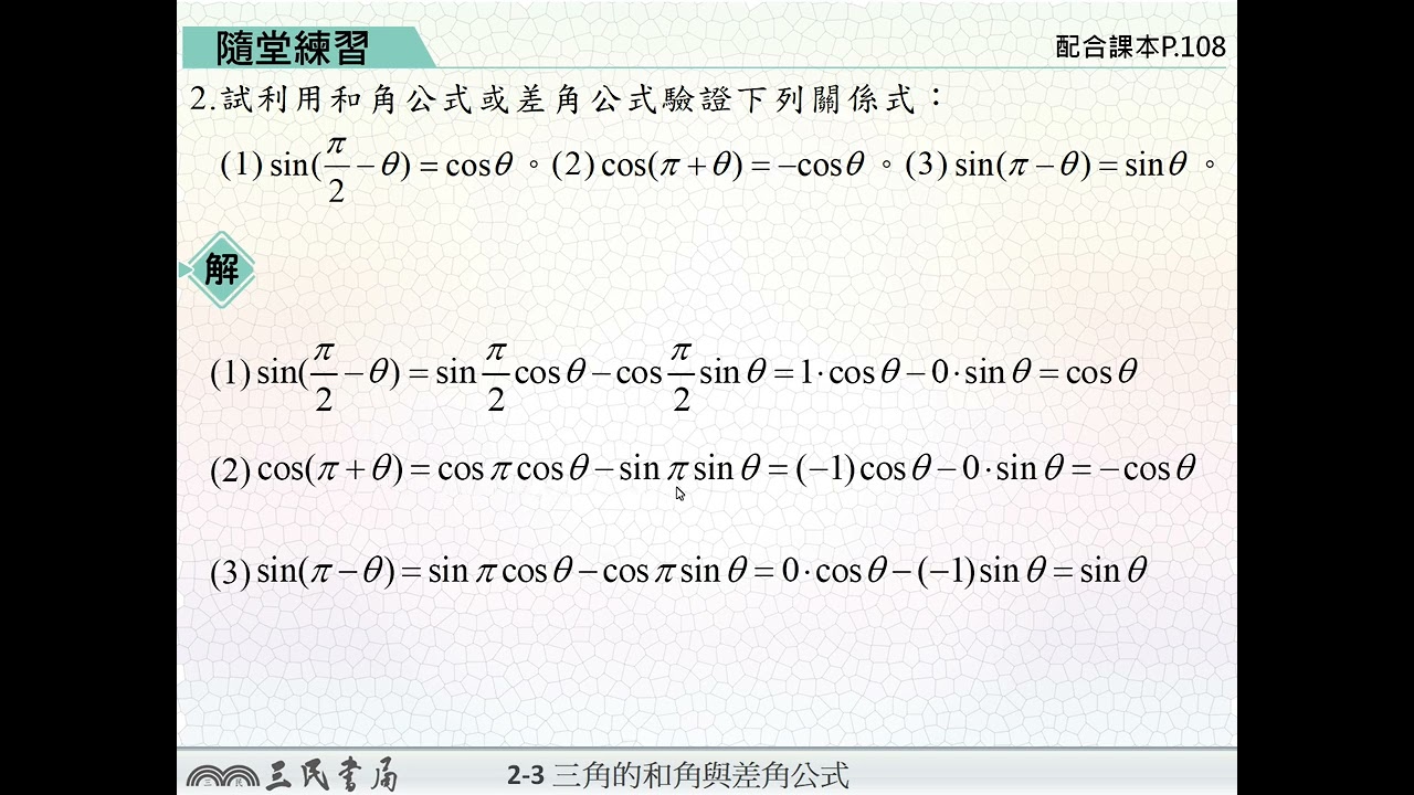載入中... 相關課程 Back 【解題】正弦與餘弦的和差角公式3 相關課程 0 / 750 登入觀看 ⇐ Use this menu to view and help create subtitles for this video in many different languages. You'll probably want to hide YouTube's captions if using these subtitles. 【解題】正弦與餘弦的和差角公式3 上傳學習單 下載學習單