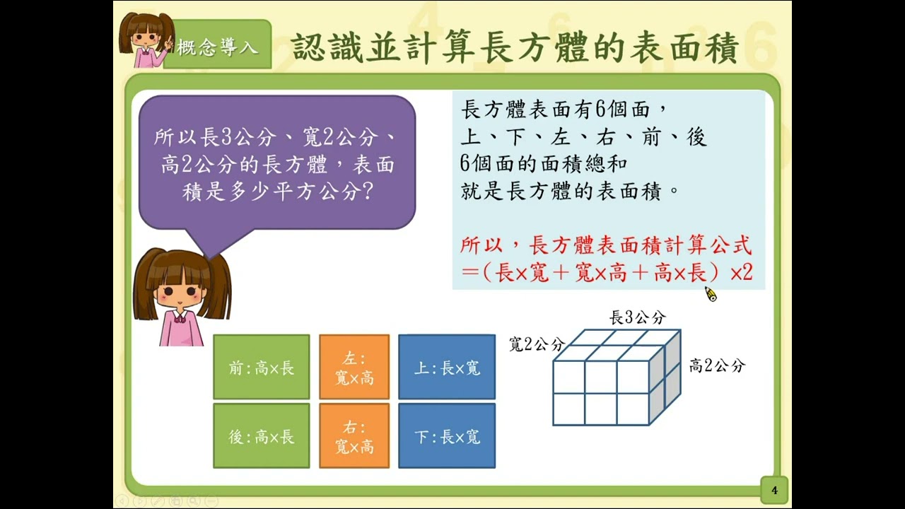 載入中... 相關課程 Back S-5-5-S03:認識並計算長方體的表面積。 相關課程 0 / 750 登入觀看 ⇐ Use this menu to view and help create subtitles for this video in many different languages. You'll probably want to hide YouTube's captions if using these subtitles. S-5-5-S03:認識並計算長方體的表面積。 上傳學習單 下載學習單