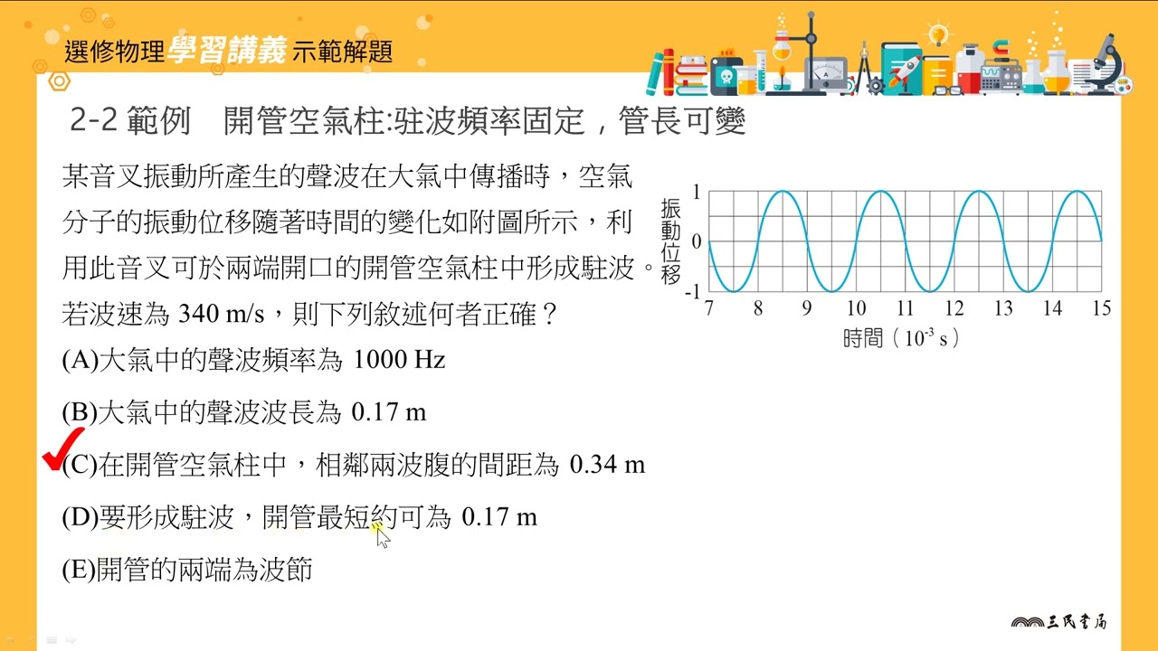 載入中... 相關課程 Back 【解題】開管空氣柱: 駐波頻率固定,管長可變 相關課程 0 / 750 登入觀看 ⇐ Use this menu to view and help create subtitles for this video in many different languages. You'll probably want to hide YouTube's captions if using these subtitles. 【解題】開管空氣柱: 駐波頻率固定,管長可變 上傳學習單 下載學習單