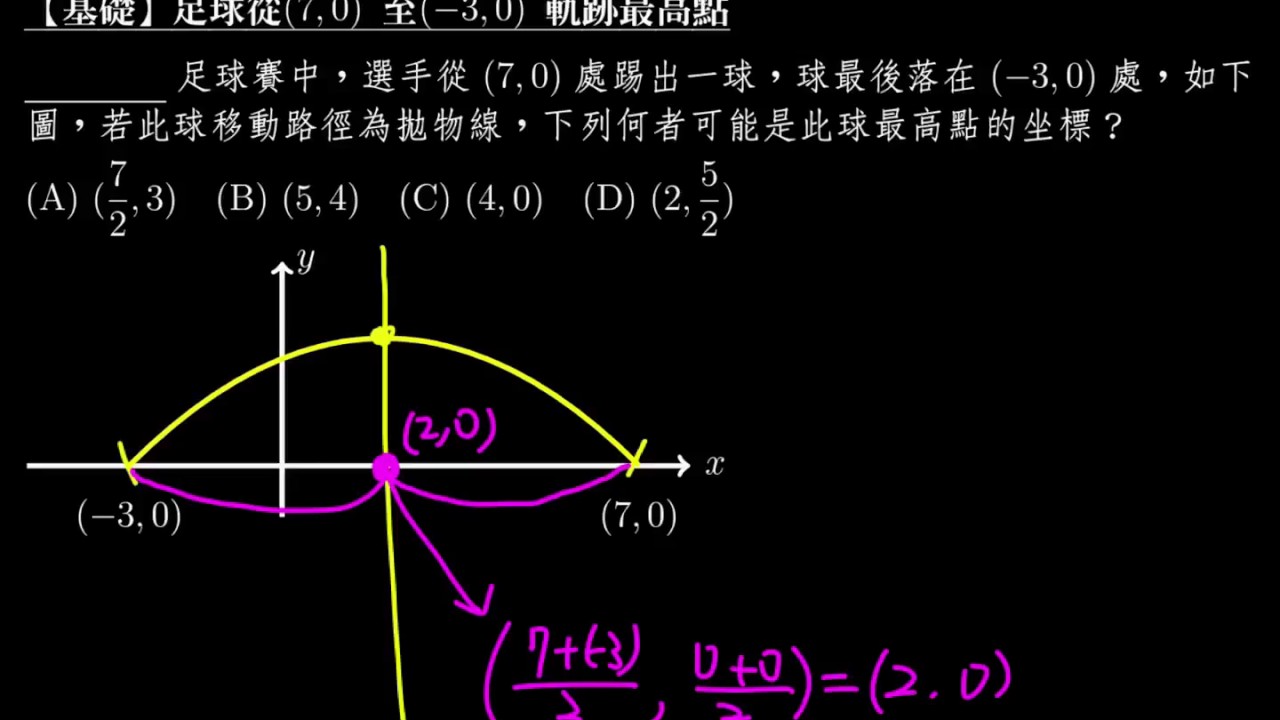 載入中... 相關課程 Back 【例題】足球從 $(7,0)$ 至 $(-3,0)$ 軌跡最高點 相關課程 0 / 750 登入觀看 ⇐ Use this menu to view and help create subtitles for this video in many different languages. You'll probably want to hide YouTube's captions if using these subtitles. 【例題】足球從 $(7,0)$ 至 $(-3,0)$ 軌跡最高點 上傳學習單 下載學習單