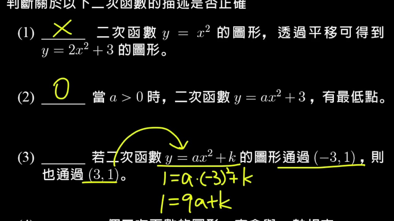 載入中... 相關課程 Back 【例題】二次函數圖形的特性 相關課程 0 / 750 登入觀看 ⇐ Use this menu to view and help create subtitles for this video in many different languages. You'll probably want to hide YouTube's captions if using these subtitles. 【例題】二次函數圖形的特性 上傳學習單 下載學習單