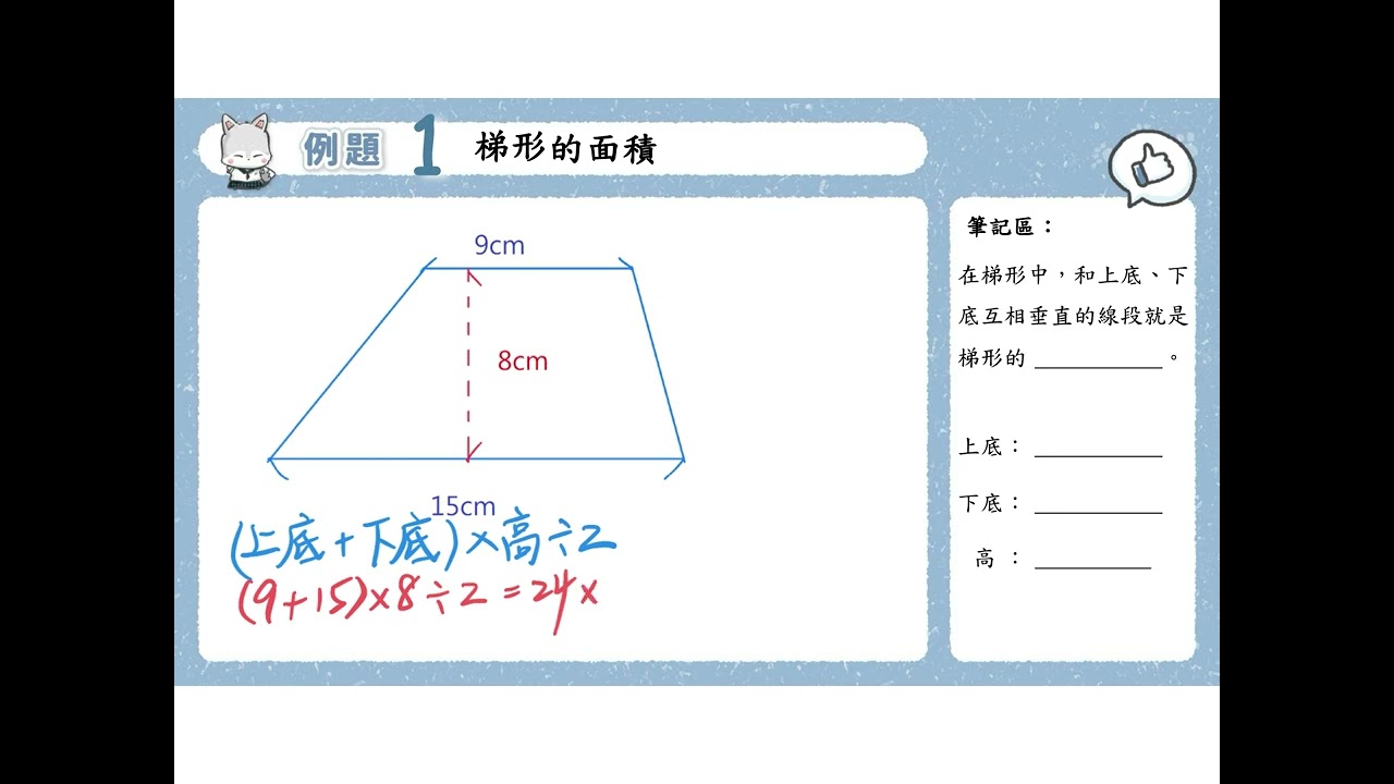 載入中... 相關課程 Back 五上 單元9 09 例題1 梯形面積 相關課程 0 / 750 登入觀看 ⇐ Use this menu to view and help create subtitles for this video in many different languages. You'll probably want to hide YouTube's captions if using these subtitles. 五上 單元9 09 例題1 梯形面積 上傳學習單 下載學習單