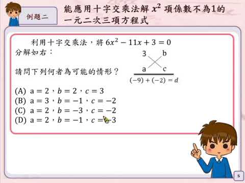 載入中... 相關課程 Back A-8-7-S04_能利用十字交乘法解一元二次方程式。 相關課程 0 / 750 登入觀看 ⇐ Use this menu to view and help create subtitles for this video in many different languages. You'll probably want to hide YouTube's captions if using these subtitles. A-8-7-S04_能利用十字交乘法解一元二次方程式。 上傳學習單 下載學習單