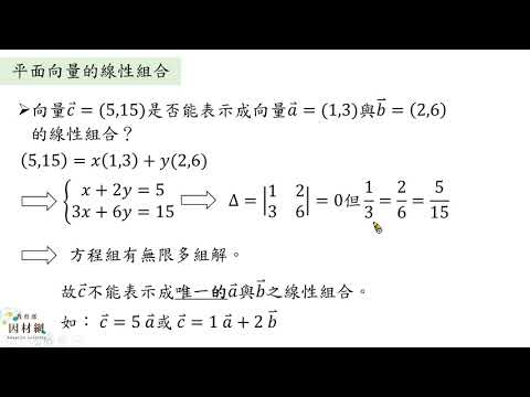 載入中... 相關課程 Back A-11A-1-S06_能理解二元一次方程組可以寫成平面向量的線性組合 相關課程 0 / 750 登入觀看 ⇐ Use this menu to view and help create subtitles for this video in many different languages. You'll probably want to hide YouTube's captions if using these subtitles. A-11A-1-S06_能理解二元一次方程組可以寫成平面向量的線性組合 上傳學習單 下載學習單