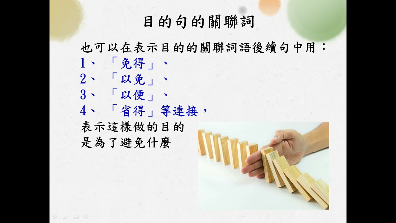 載入中... 相關課程 Back 語法[十一]/目的句 相關課程 0 / 750 登入觀看 ⇐ Use this menu to view and help create subtitles for this video in many different languages. You'll probably want to hide YouTube's captions if using these subtitles. 語法[十一]/目的句 上傳學習單 下載學習單