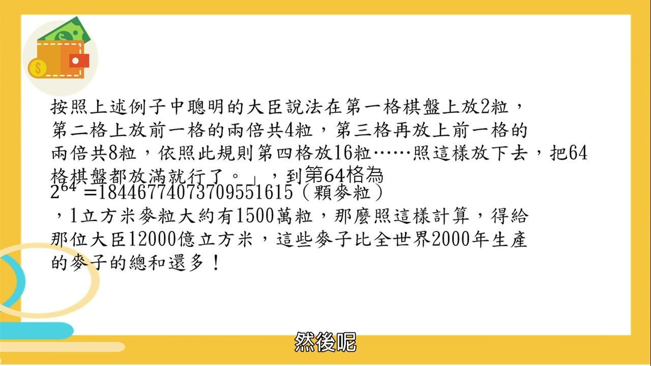 載入中... 相關課程 Back 【暖身】理財的重要性──棋盤麥粒問題 相關課程 0 / 750 登入觀看 ⇐ Use this menu to view and help create subtitles for this video in many different languages. You'll probably want to hide YouTube's captions if using these subtitles. 【暖身】理財的重要性──棋盤麥粒問題 上傳學習單 下載學習單