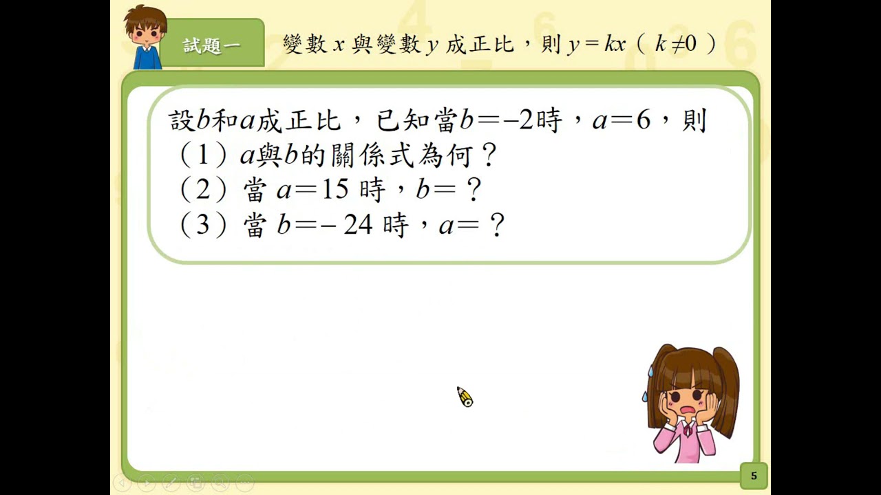 載入中... 相關課程 Back N-7-9-S02_能理解變數x與變數y成正比,則y=kx。 相關課程 0 / 750 登入觀看 ⇐ Use this menu to view and help create subtitles for this video in many different languages. You'll probably want to hide YouTube's captions if using these subtitles. N-7-9-S02_能理解變數x與變數y成正比,則y=kx。 上傳學習單 下載學習單