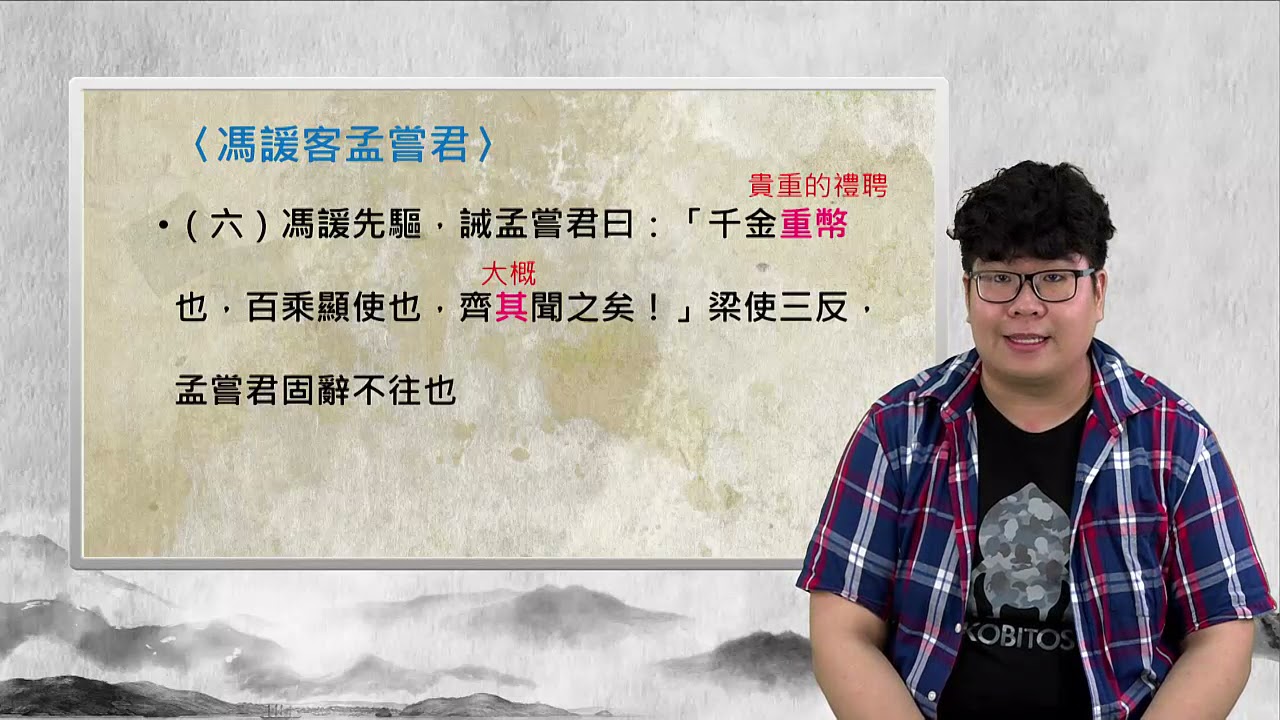 載入中... 相關課程 Back 馮諼客孟嘗君:課文賞析(下)馮諼為君築三窟 相關課程 0 / 750 登入觀看 ⇐ Use this menu to view and help create subtitles for this video in many different languages. You'll probably want to hide YouTube's captions if using these subtitles. 馮諼客孟嘗君:課文賞析(下)馮諼為君築三窟 上傳學習單 下載學習單
