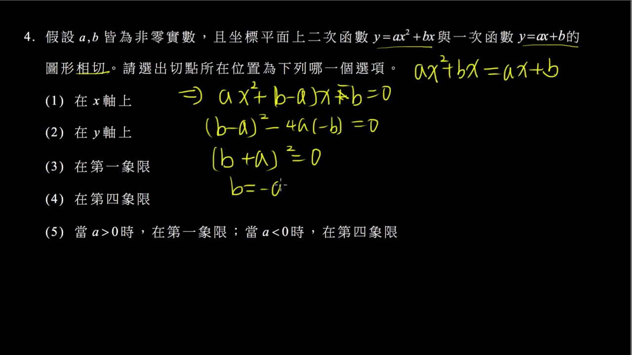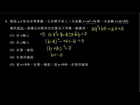載入中... 相關課程 Back 【數甲】105 單選4 二次函數的相切 相關課程 0 / 750 登入觀看 ⇐ Use this menu to view and help create subtitles for this video in many different languages. You'll probably want to hide YouTube's captions if using these subtitles. 【數甲】105 單選4 二次函數的相切 上傳學習單 下載學習單