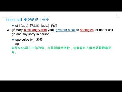 載入中... 相關課程 Back better still 更好的是;何不 相關課程 0 / 750 登入觀看 ⇐ Use this menu to view and help create subtitles for this video in many different languages. You'll probably want to hide YouTube's captions if using these subtitles. better still 更好的是;何不 上傳學習單 下載學習單