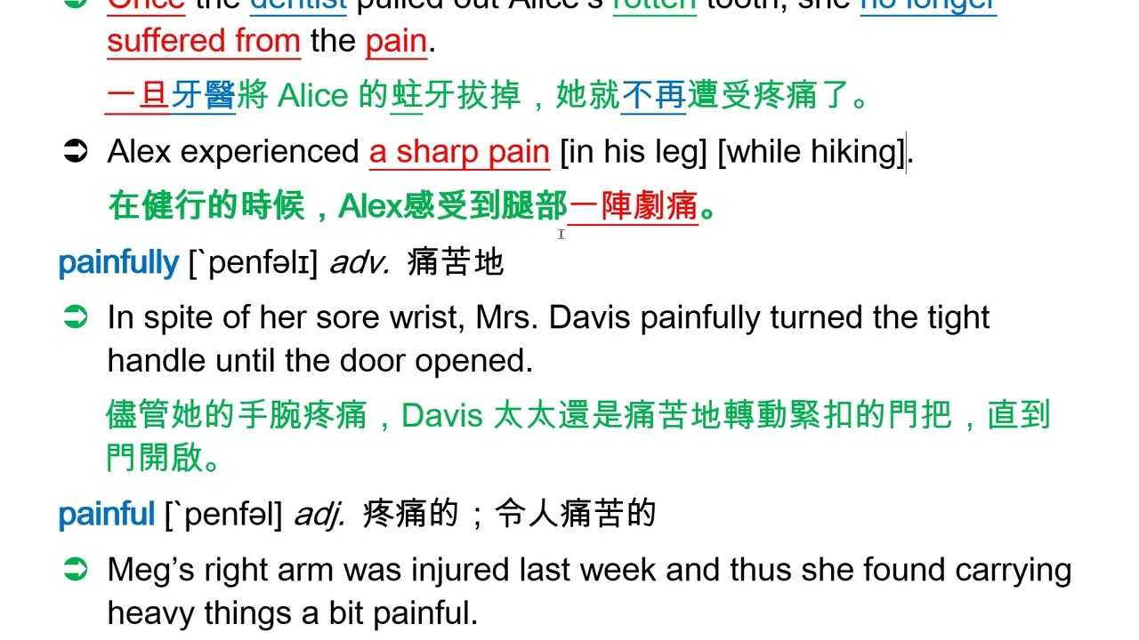 pain [pen] n. [U, C] 疼痛