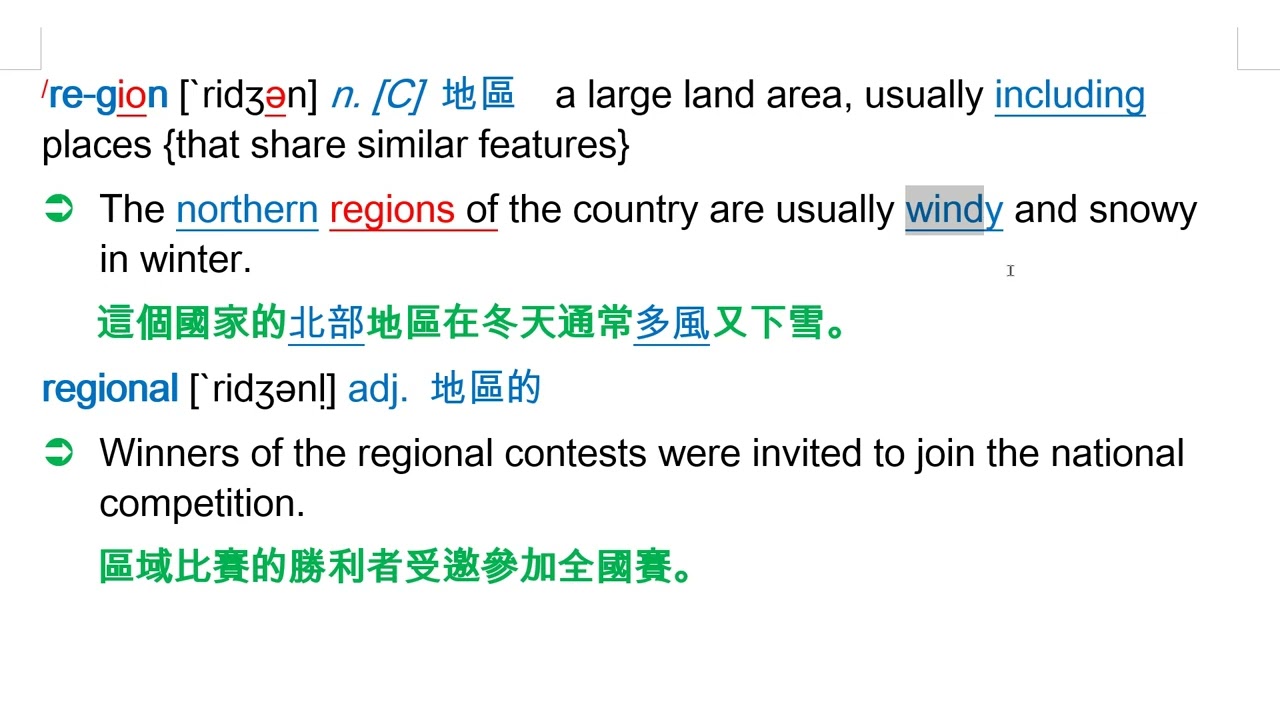 region [`ridʒən] n. [C] 地區