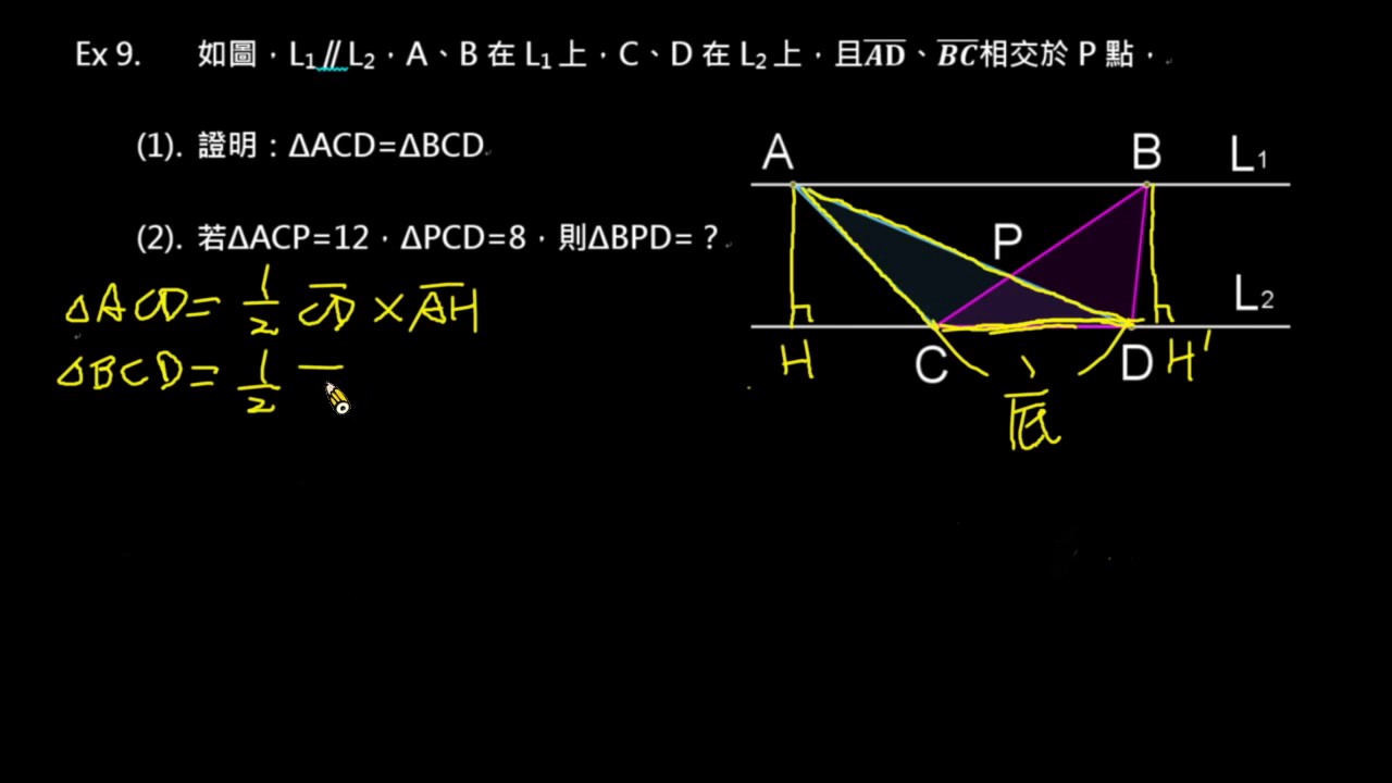 Back 【例題】利用平行線證明三角形全等 相關課程 0 / 750 登入觀看 ⇐ Use this menu to view and help create subtitles for this video in many different languages. You'll probably want to hide YouTube's captions if using these subtitles. 【例題】利用平行線證明三角形全等 上傳學習單 下載學習單