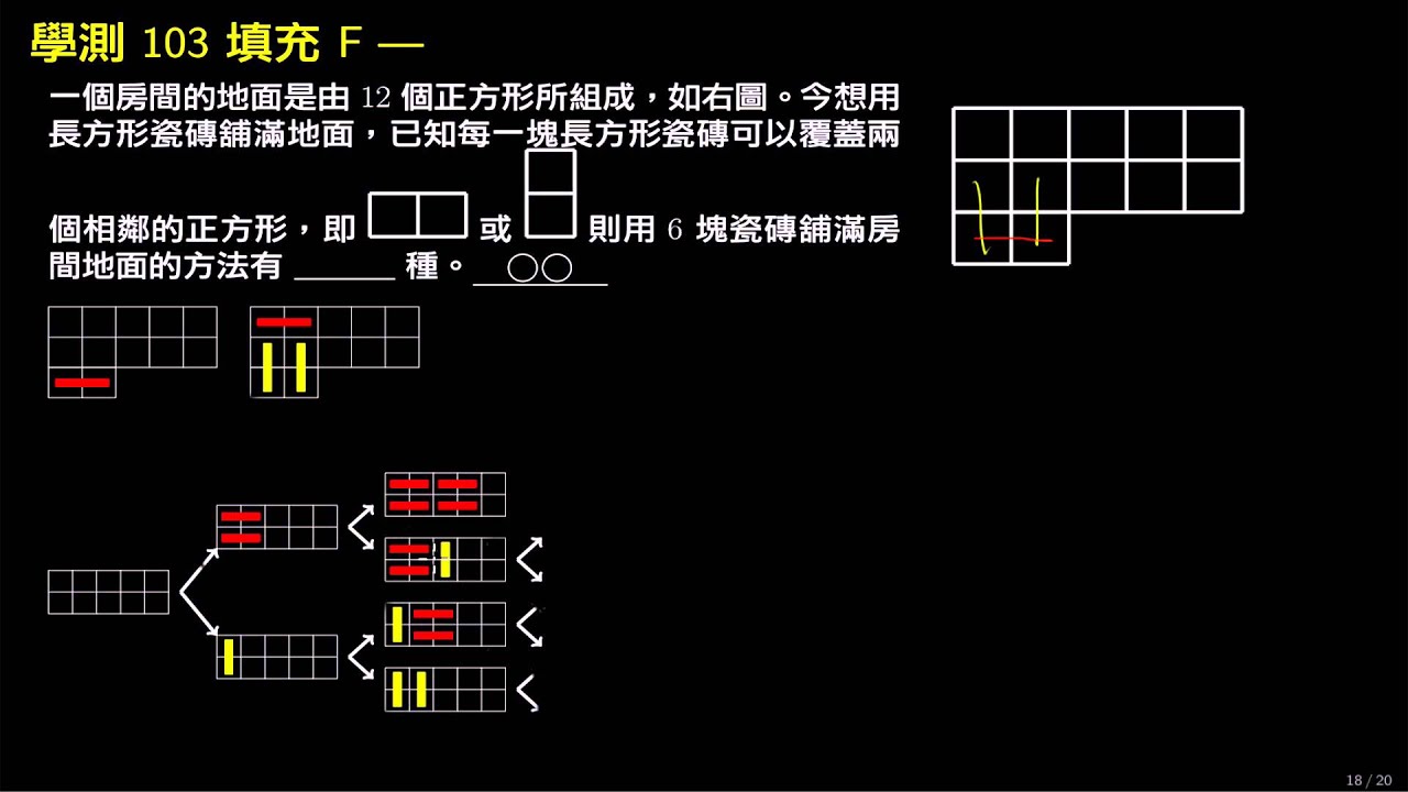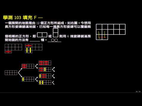 載入中... 相關課程 Back 【學測】103 填充F 長方形磁磚鋪法 相關課程 0 / 750 登入觀看 ⇐ Use this menu to view and help create subtitles for this video in many different languages. You'll probably want to hide YouTube's captions if using these subtitles. 【學測】103 填充F 長方形磁磚鋪法 : 樹狀列舉法 上傳學習單 下載學習單
