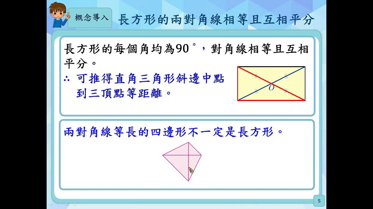 載入中... 相關課程 Back S-8-10-S01_能理解長方形對角線的特性。並理解兩條對角線等長且互相平分的四邊形是長方形。 相關課程 0 / 750 登入觀看 ⇐ Use this menu to view and help create subtitles for this video in many different languages. You'll probably want to hide YouTube's captions if using these subtitles. S-8-10-S01_能理解長方形對角線的特性。並理解兩條對角線等長且互相平分的四邊形是長方形。 上傳學習單 下載學習單
